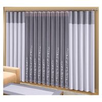 Na ostatnim zdjęciu prezentowana jest przykładowa dekoracja okienna składająca się z białej metrażowej firanki Alabaster z gotowymi zasłonami Gracja 150 x 250 cm w kolorystyce srebrno-grafitowej.