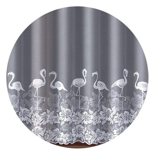 Firanka żakardowa ozdobiona efektownym wzorem flamingów.