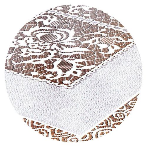 Prostokątny bieżnik w kolorze białym, z motywem kwiatowym w modnej formie witrażu.