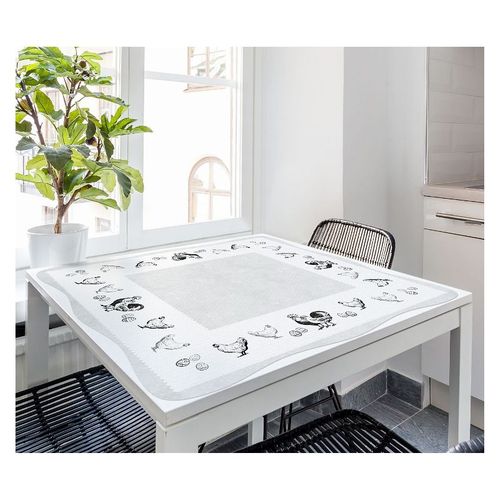 Wielkanocna serweta w białym kolorze z efektownym czarno-szarym wzorem świątecznym.