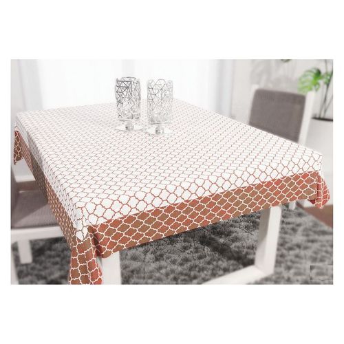Prostokątny obrus z ozdobnym drukowanym wzorze modnej marokańskiej koniczyny. Obrus w biało-brązowej wersji kolorystycznej.