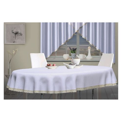 Biały owalny obrus idealny do kuchni, jadalni lub na stół w Twoim ogrodzie.