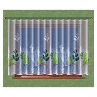 Nowoczesna firanka żakardowa w kolorze białym z kolorowymi kaktusami.