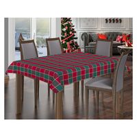 Efektowny prostokątny obrus, ozdobiony czerwono-zieloną świąteczną kratą.