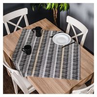Kwadratowa serweta w czarno-szarej kolorystyce z hydrofobową powłoką (utrudniającą plamienie).